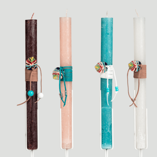 Με διακριτικό ύφος και φυσικά υλικά, κάθε λαμπάδα γίνεται μοναδική. Ξύλινα στολίδια, γυάλινες χάντρες, φίλντισι διακοσμητικά και πολύχρωμες κορδέλες συνδυάζονται αρμονικά, ώστε να βρείτε αυτή που ταιριάζει απόλυτα στο στυλ και το γούστο σας.